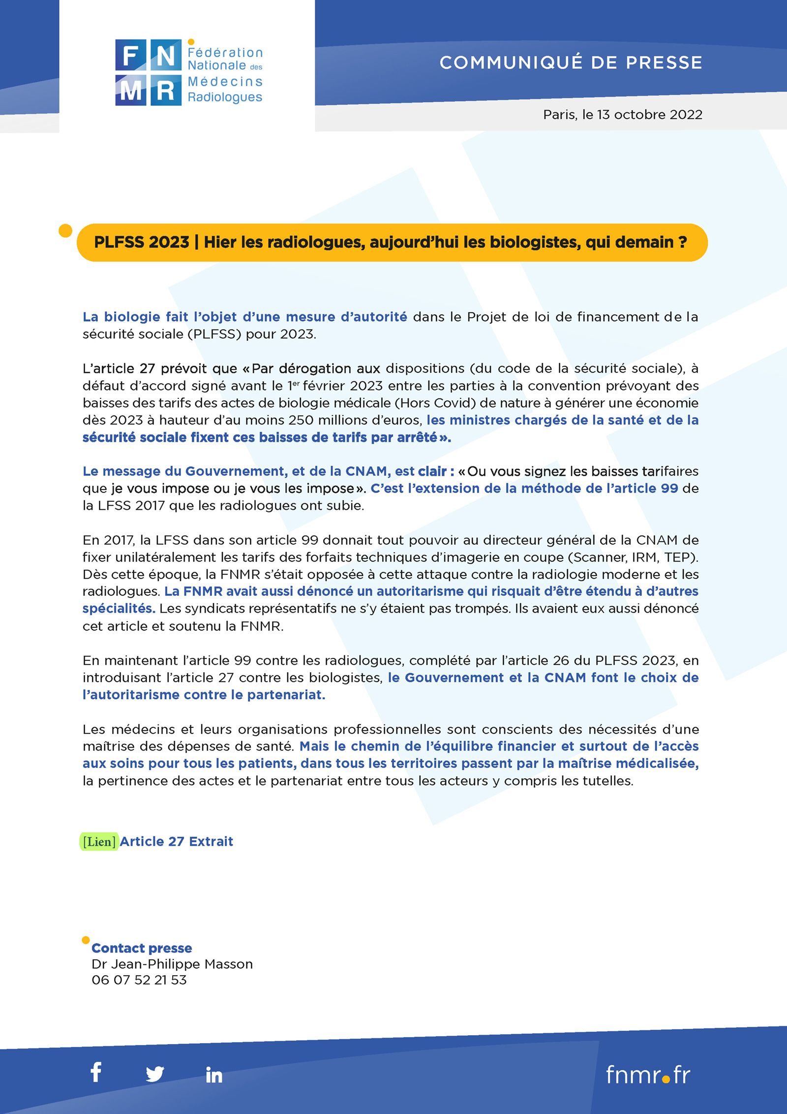 Publié dans Actualités - Communiqués. Communiqué de presse du SNBH - 12/10/23 Créé le 13 octobre 2023.